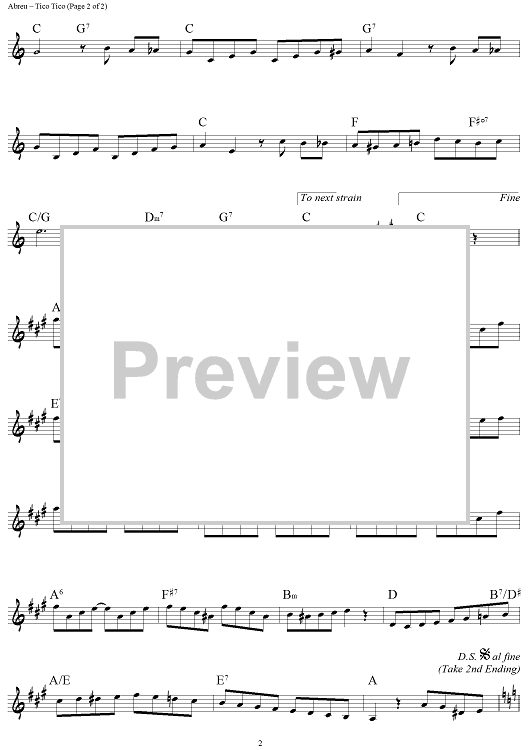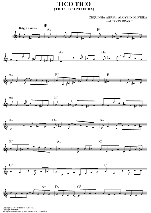 Digital Sheet Music for Tico Tico (Tico Tico No Fuba) by Ervin Drake, Zequinha Abreu, Aloysio Oliveira scored for Lead Sheet; id:456885