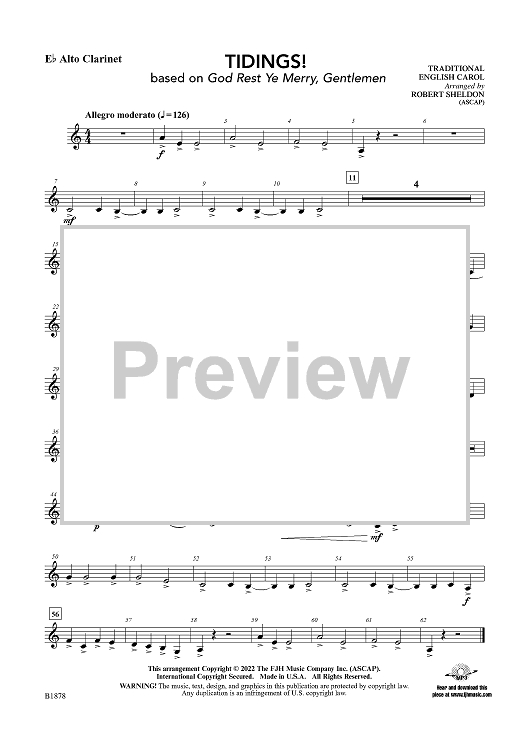 Digital Sheet Music for Tidings! - Eb Alto Clarinet by Traditional English Carol, Robert Sheldon scored for Concert Band; id:498460