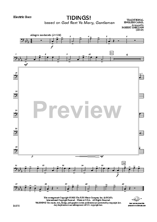 Digital Sheet Music for Tidings! - Electric Bass by Traditional English Carol, Robert Sheldon scored for Concert Band; id:498472