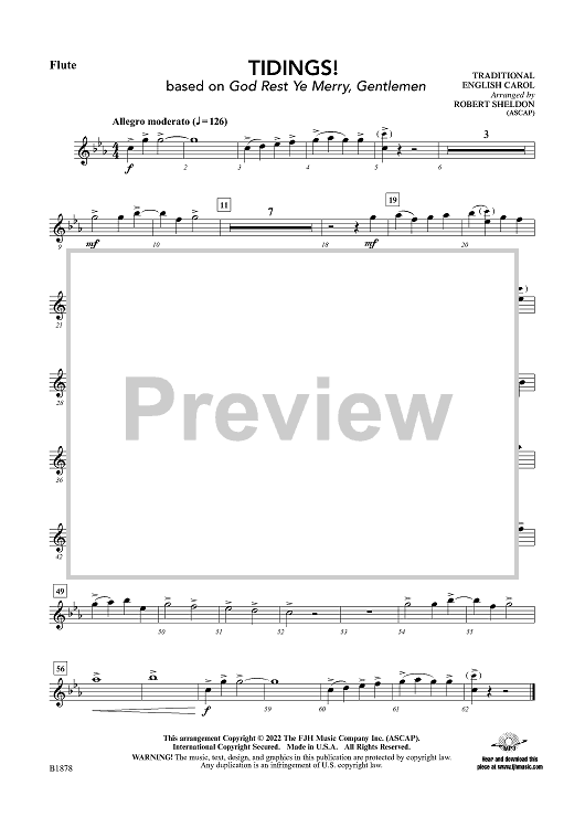 Digital Sheet Music for Tidings! - Flute by Traditional English Carol, Robert Sheldon scored for Concert Band; id:498455
