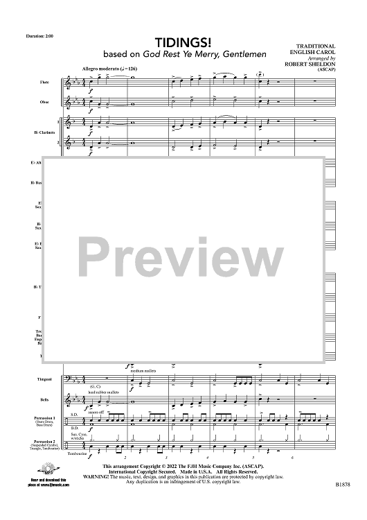 Digital Sheet Music for Tidings! - Score by Traditional English Carol, Robert Sheldon scored for Concert Band; id:498454