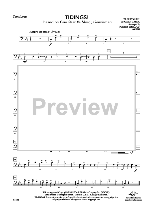 Digital Sheet Music for Tidings! - Trombone by Traditional English Carol, Robert Sheldon scored for Concert Band; id:498468