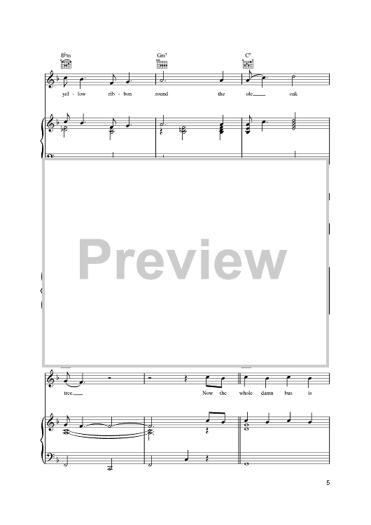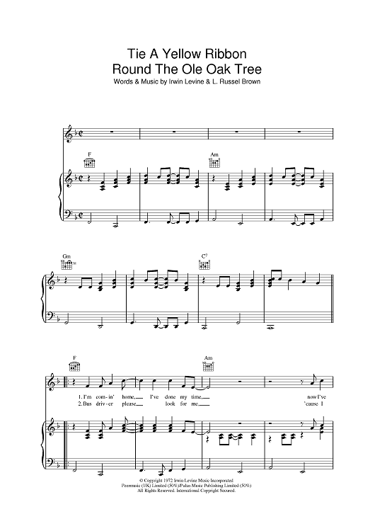 Digital Sheet Music for Tie A Yellow Ribbon 'Round The Old Oak Tree by Irwin Levine, L. Russell Brown, Tony Orlando scored for Piano/Vocal/Chords; id:401399