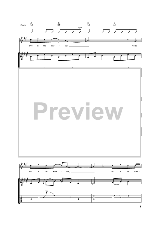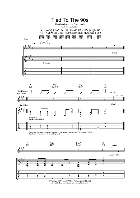 Digital Sheet Music for Tied To The 90s by Fran Healy, Travis scored for Guitar Tab; id:393615