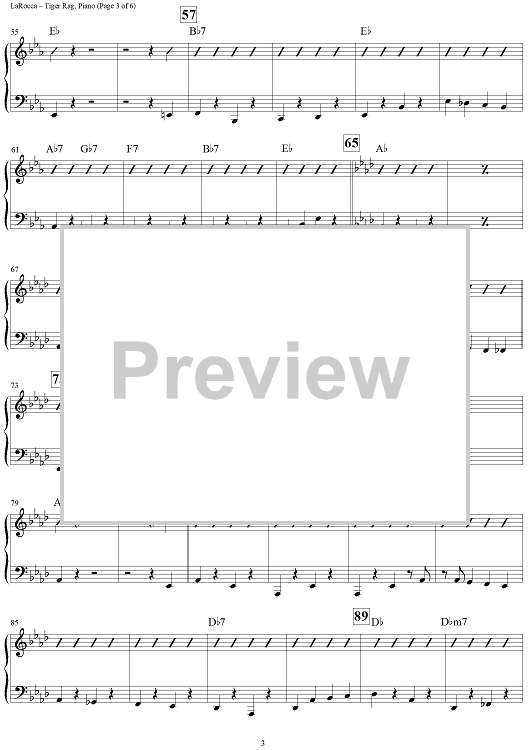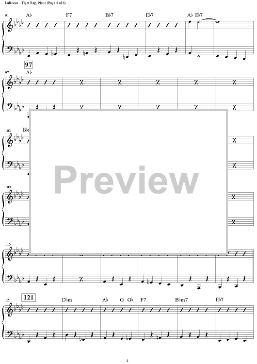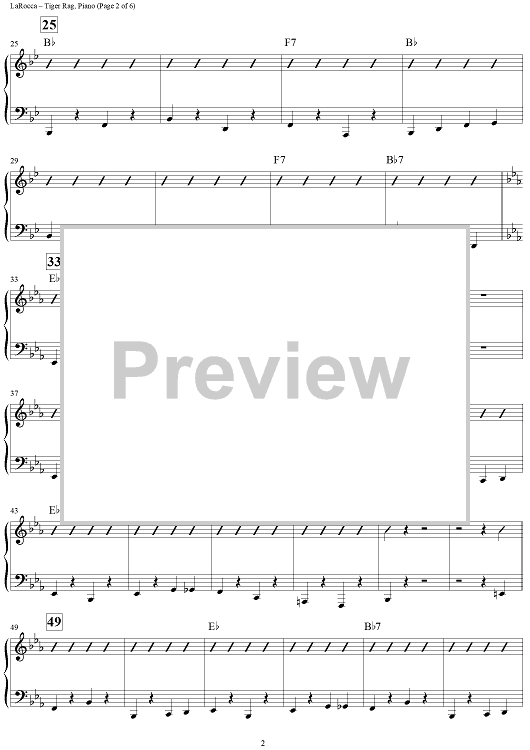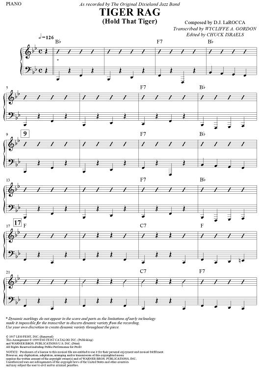Digital Sheet Music for Tiger Rag (Hold That Tiger) - Piano by Original Dixieland Jazz Band, Nick LaRocca scored for Jazz Ensemble; id:308470