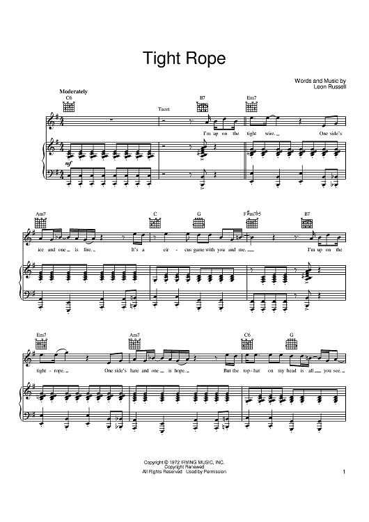 Digital Sheet Music for Tight Rope by Leon Russell scored for Piano/Vocal/Chords; id:399118