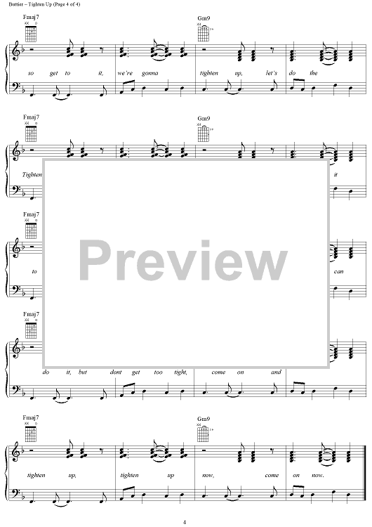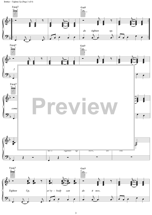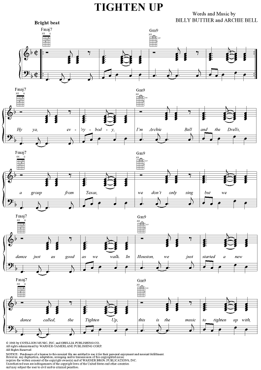 Digital Sheet Music for Tighten Up by Archie Bell, Archie Bell & The Drells, Billy Buttier scored for Piano/Vocal/Chords; id:132756