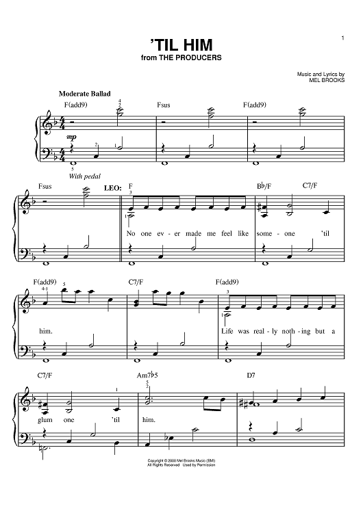 "'Til Him" Sheet Music by Mel Brooks