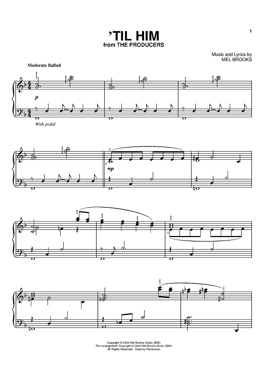 Digital Sheet Music for 'Til Him by Mel Brooks scored for Piano; id:373031