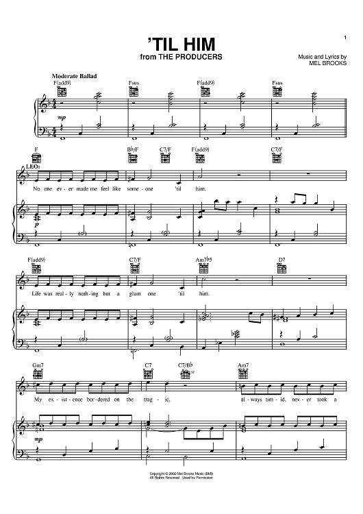 Digital Sheet Music for 'Til Him by Mel Brooks scored for Piano/Vocal/Chords; id:381809