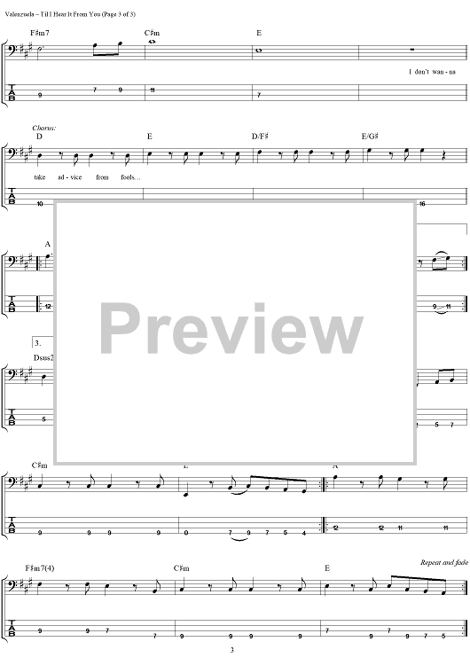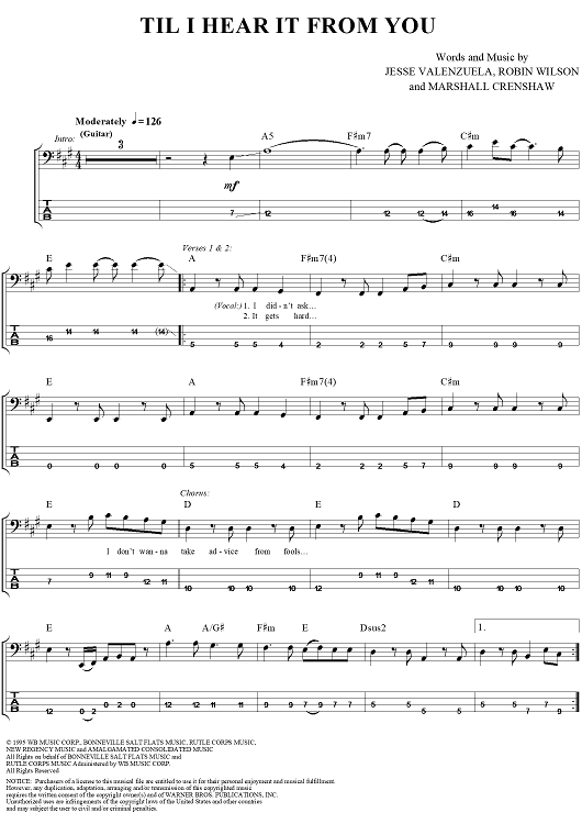 Digital Sheet Music for Til I Hear It From You by Jesse Valenzuela, Robin Wilson, Marshall Crenshaw, Gin Blossoms scored for Bass Tab; id:285004