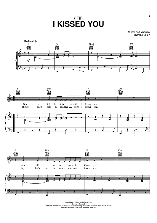 Digital Sheet Music for ('Til) I Kissed You by Don Everly, The Everly Brothers scored for Piano/Vocal/Chords; id:367460