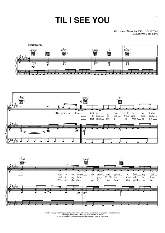 Digital Sheet Music for Til I See You by Joel Houston, Jadwin Gillies scored for Piano/Vocal/Chords; id:401698