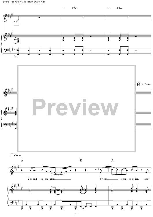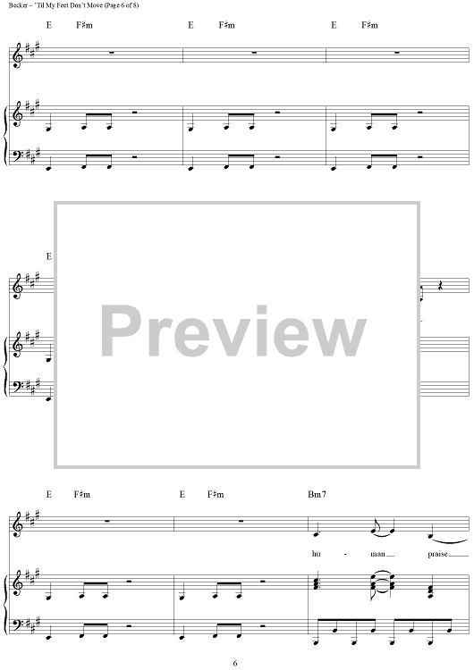 Digital Sheet Music for 'Til My Feet Don't Move by Margaret Becker scored for Piano/Vocal/Chords; id:119161