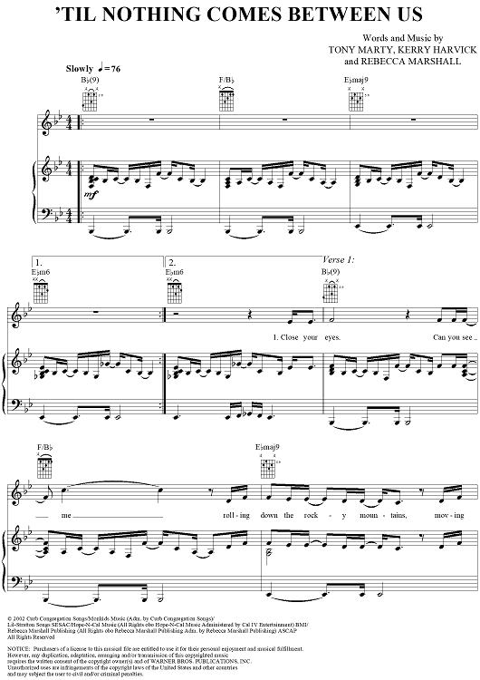 Digital Sheet Music for 'Til Nothing Comes Between Us by John Michael Montgomery, Tony Marty, Kerry Harvick, Rebecca Marshall scored for Piano/Vocal/Chords; id:295063
