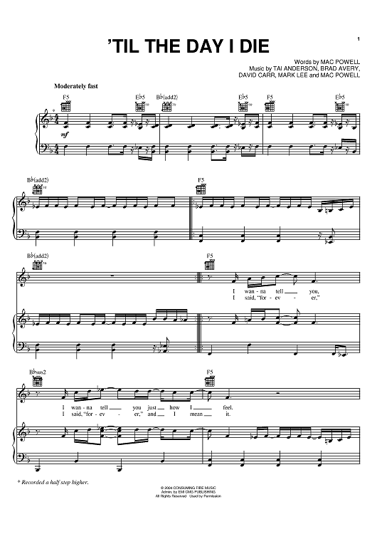 Digital Sheet Music for 'Til The Day I Die by Third Day, Mac Powell, Mark David Lee, Tai Anderson, Brad Avery, David Carr scored for Piano/Vocal/Chords; id:375218