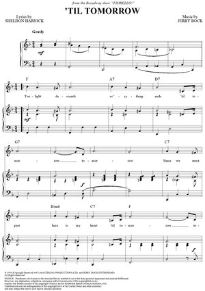 Digital Sheet Music for 'Til Tomorrow by Jerry Bock, Sheldon Harnick scored for Piano/Vocal/Chords; id:116259