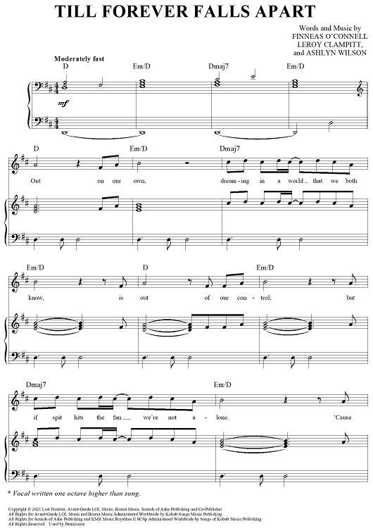 Digital Sheet Music for Till Forever Falls Apart by Leroy Clampitt, Finneas O'Connell, Ashe scored for Piano/Vocal/Chords; id:469161