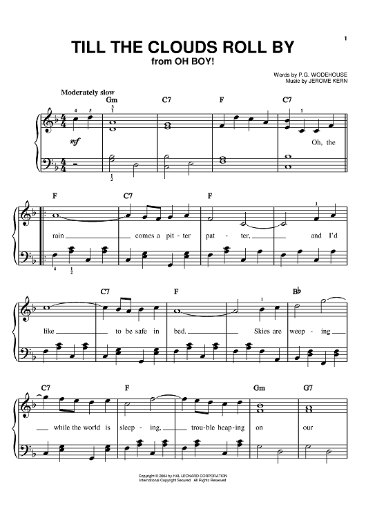 Digital Sheet Music for Till The Clouds Roll By by Jerome Kern, P.G. Wodehouse scored for Easy Piano; id:373880