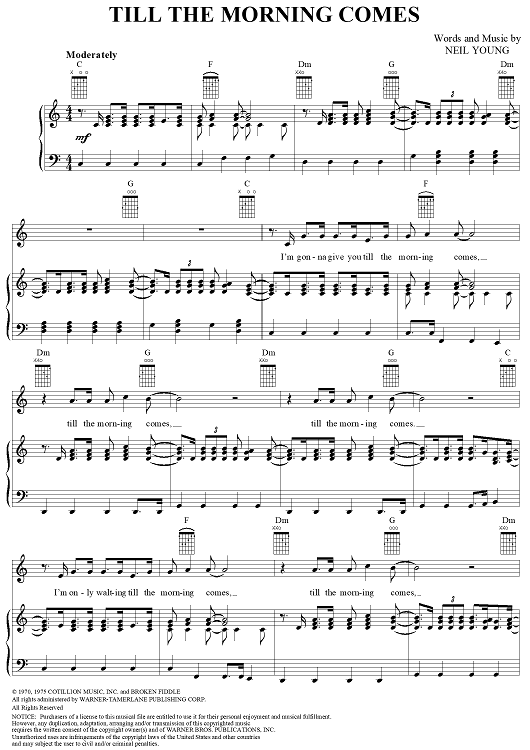 Digital Sheet Music for Till the Morning Comes by Neil Young scored for Piano/Vocal/Chords; id:262788