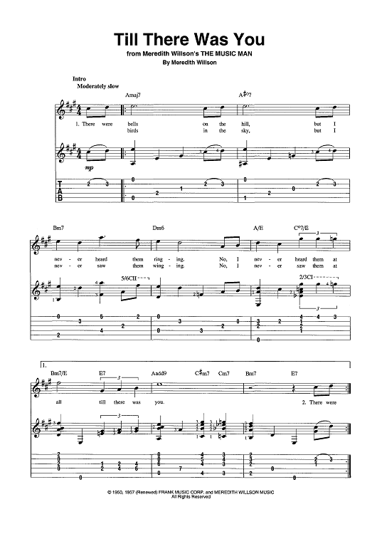 Digital Sheet Music for Till There Was You by Meredith Willson scored for Guitar Tab/Vocal/Chords; id:443550
