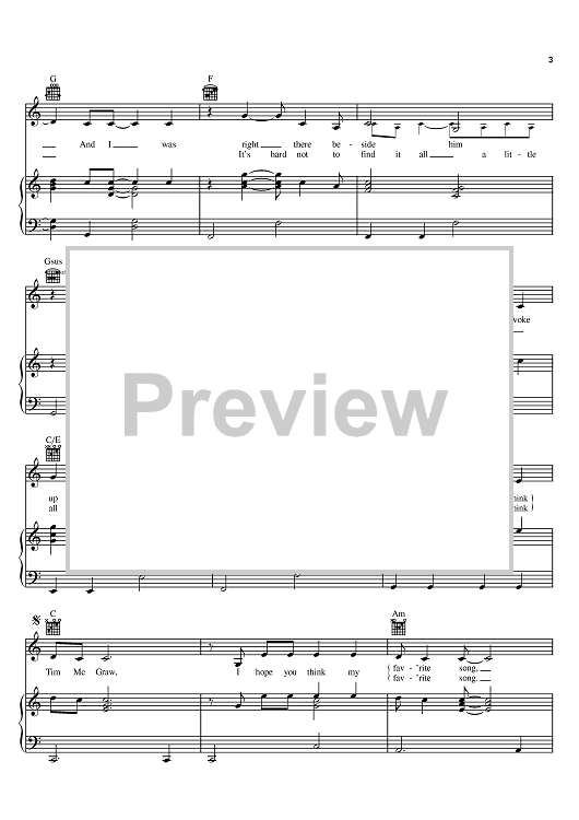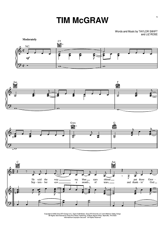 Digital Sheet Music for Tim McGraw by Liz Rose, Taylor Swift scored for Piano/Vocal/Chords; id:393706