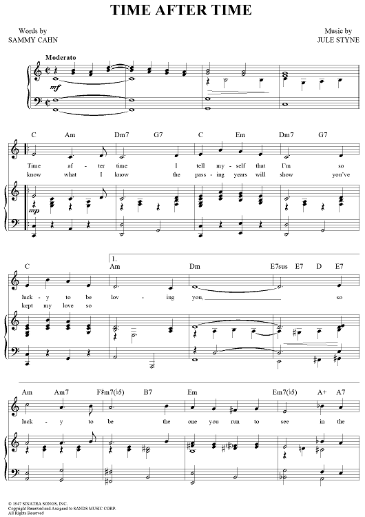 Digital Sheet Music for Time After Time by Jule Styne, Sammy Cahn scored for Piano/Vocal/Chords; id:289256