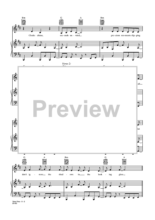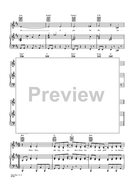 Digital Sheet Music for TIME FLIES (from “DELIRIUM”) by Benoit Jutras, Robert Dillon, Francis Collard scored for Piano/Vocal/Chords; id:436742