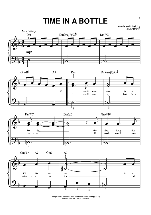 Digital Sheet Music for Time In A Bottle by Jim Croce scored for Big Note Piano; id:372586