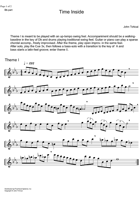 Digital Sheet Music for Time Inside by , John Tchicai scored for B-flat Lead Sheet; id:322830