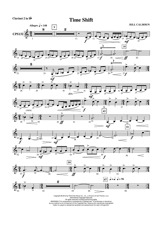 "Time Shift - Clarinet 2 in Bb" Sheet Music by Bill Calhoun