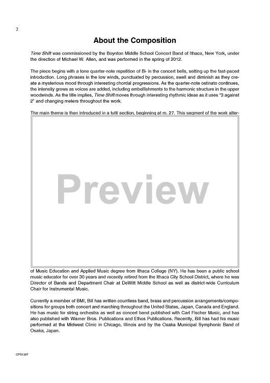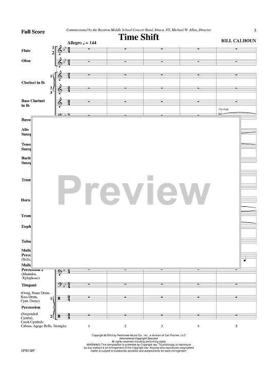 Digital Sheet Music for Time Shift - Score by Bill Calhoun scored for Concert Band; id:430753