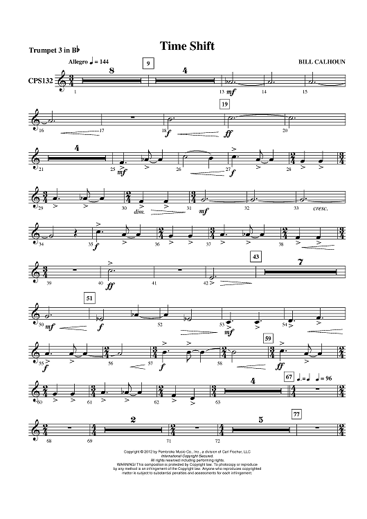 "Time Shift - Trumpet 3 in Bb" Sheet Music by Bill Calhoun