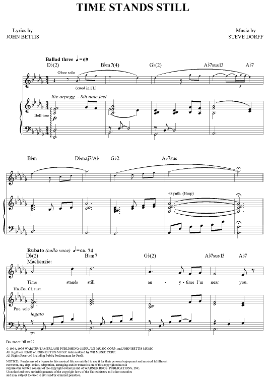 Digital Sheet Music for Time Stands Still by Steve Dorff, John Bettis scored for Piano/Vocal/Chords; id:355721
