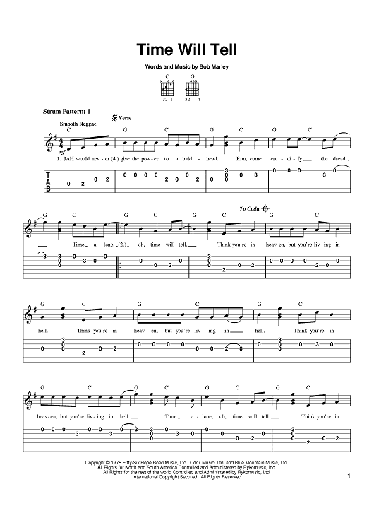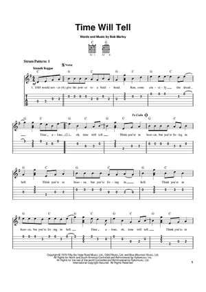 Digital Sheet Music for Time Will Tell by The Black Crowes, Bob Marley scored for Easy Guitar Tab; id:371375