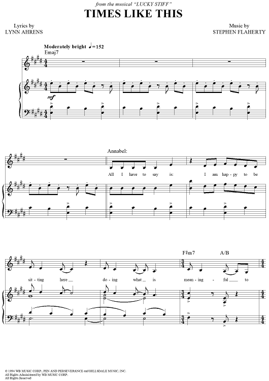 Digital Sheet Music for Times Like This by Stephen Flaherty, Lynn Ahrens scored for Piano/Vocal/Chords; id:288477