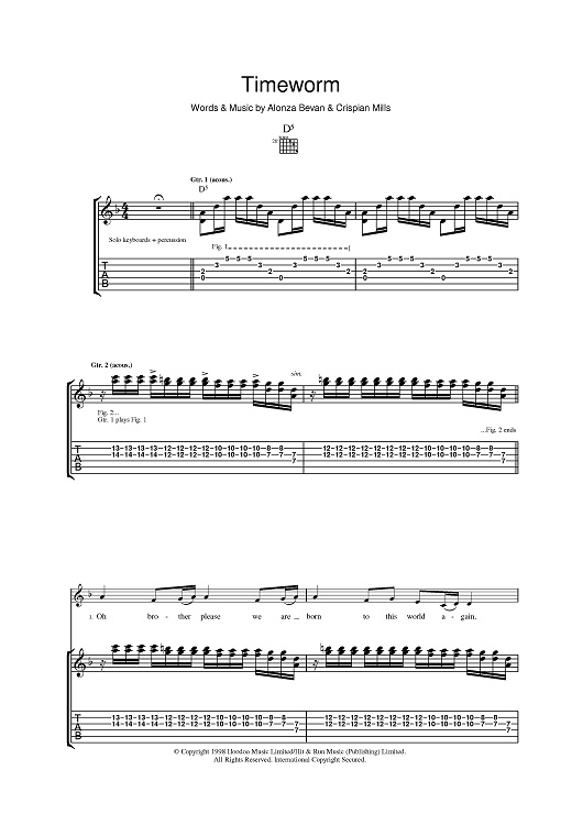 Digital Sheet Music for Timeworm by Alonza Bevan, Kula Shaker, Crispian Mills scored for Guitar Tab; id:394923