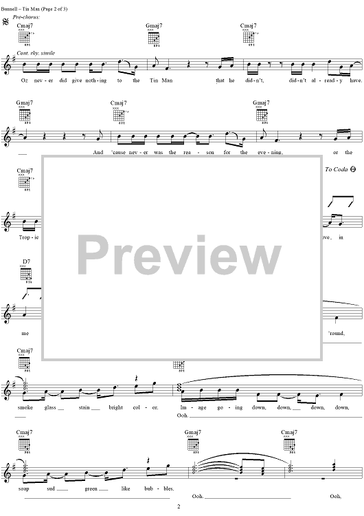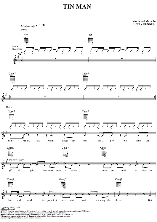 Digital Sheet Music for Tin Man by America, Dewey Bunnell scored for Guitar Tab/Vocal; id:273658