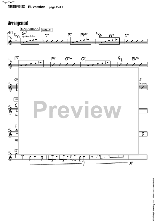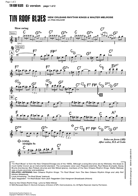 Digital Sheet Music for Tin Roof Blues by , Pete Churchill, Walter Melrose, New Orleans Rhythm Kings scored for E-flat Lead Sheet; id:355580