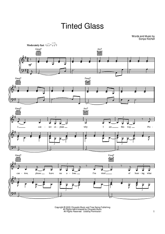 Digital Sheet Music for Tinted Glass by Sonya Kitchell scored for Piano/Vocal/Chords; id:399358