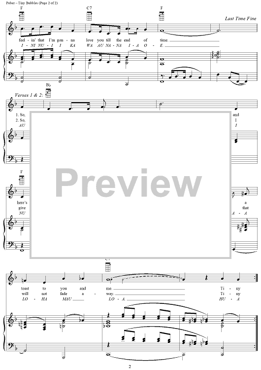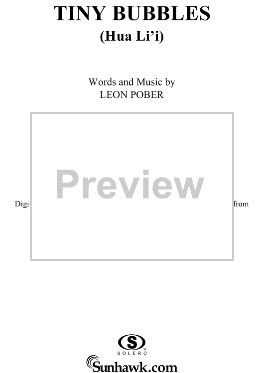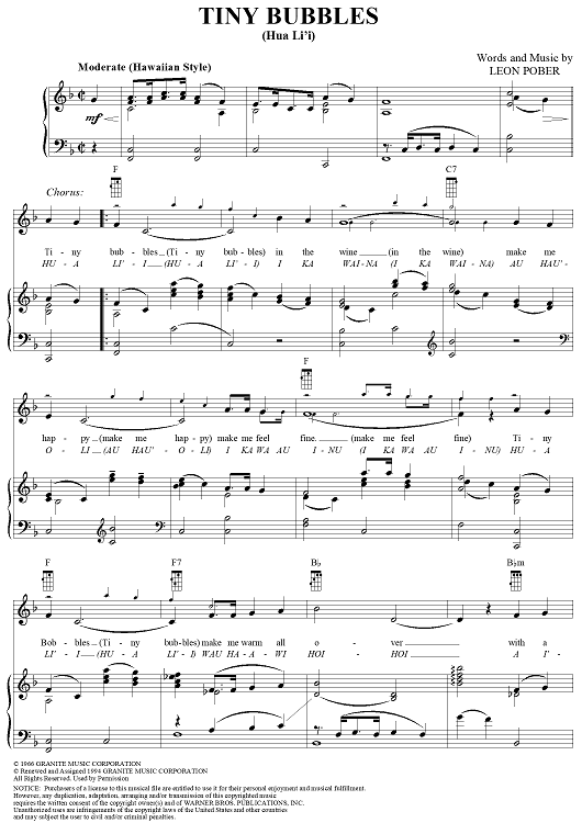 Digital Sheet Music for Tiny Bubbles (Hua Li'i) by Leon Pober, Don Ho scored for Piano/Vocal/Chords; id:254703