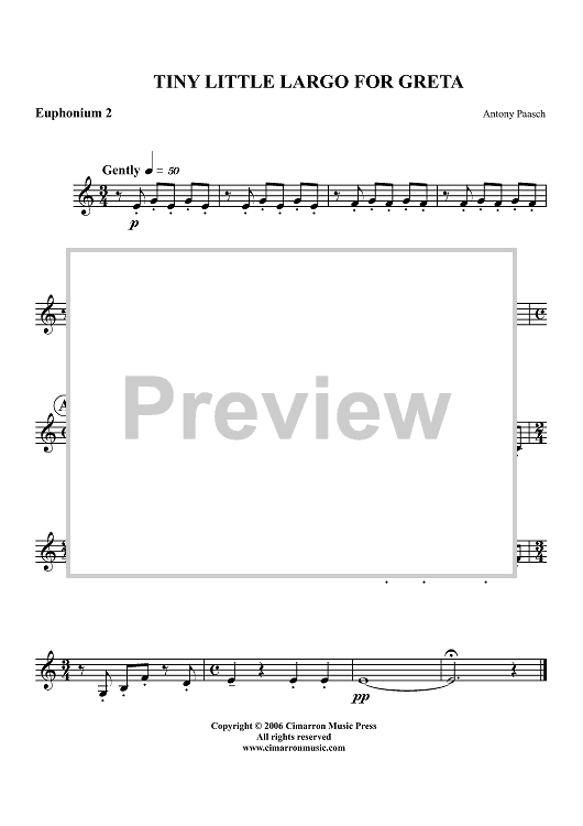 "Tiny Little Largo for Greta - Euphonium 2 BC/TC" Sheet Music by Antony Paasch