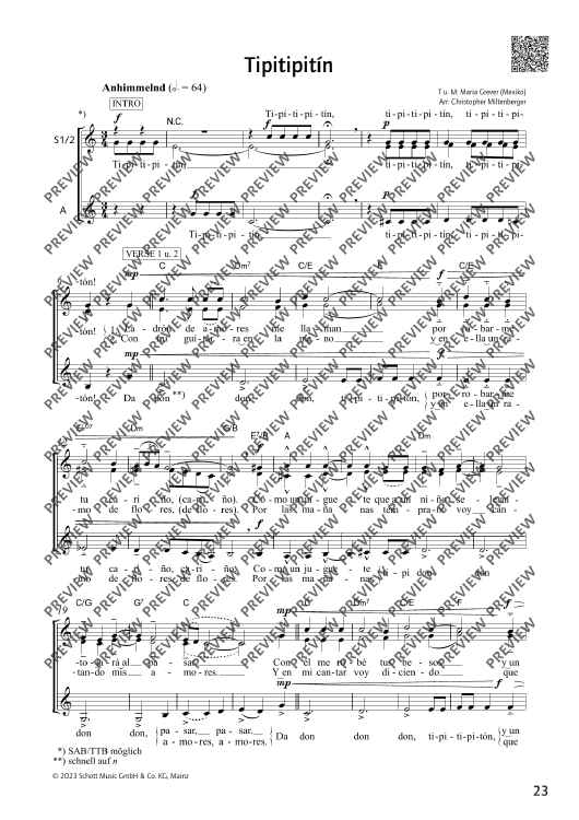 Digital Sheet Music for Tipitipitín by Maria Grever, Christopher Miltenberger scored for School Choir, Mixed Choir (vv/ssa); id:500572