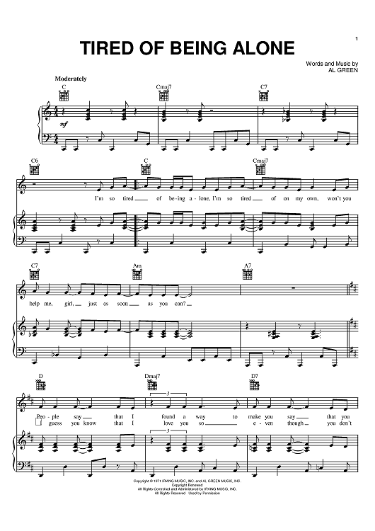 Digital Sheet Music for Tired Of Being Alone by Al Green scored for Piano/Vocal/Chords; id:367534