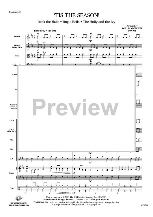 Digital Sheet Music for 'Tis the Season! - Score by William Owens scored for String Orchestra; id:437081