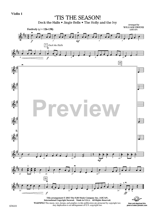 "'Tis the Season! - Violin 1" Sheet Music by William Owens