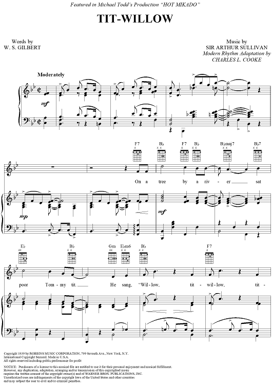 Digital Sheet Music for Tit-Willow by W. S. Gilbert, Doc Cook, Arthur Sullivan scored for Piano/Vocal/Chords; id:362444