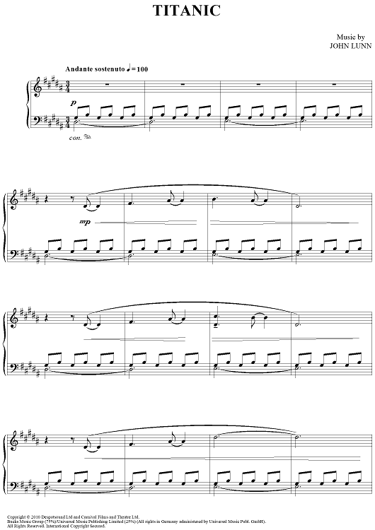 Digital Sheet Music for Titanic by John Lunn scored for Piano Solo; id:449251