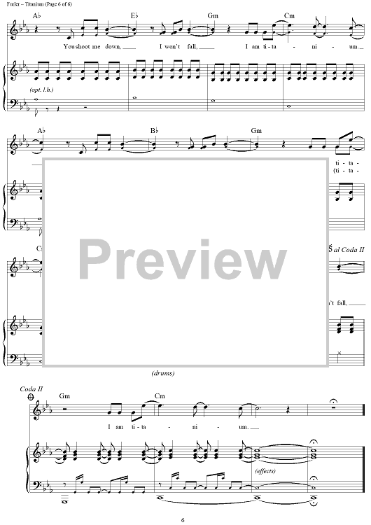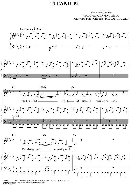 Digital Sheet Music for Titanium by Giorgio Tuinfort, Sia Furler, Nick van de Wall, David Guetta scored for Piano/Vocal/Chords; id:432871