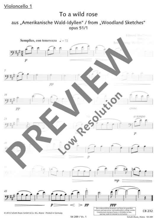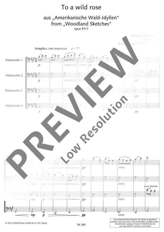 "To A Wild Rose - Score and Parts" Sheet Music by Edward MacDowell